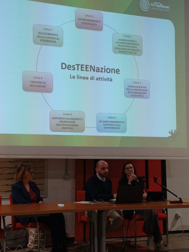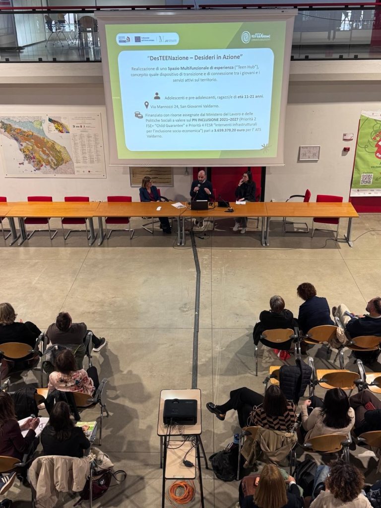 Al termine della prima parte, Gabriele Rossi, psicologo, psicoterapeuta e responsabile dei servizi sociali del Comune di San Giovanni Valdarno, insieme ad Alice Bernini, psicologa e coordinatrice strategica programmatica del progetto DeSTEENazione, hanno presentato il progetto DeSTEENazione: un centro multifunzionale che nascerà in via Mannozzi a San Giovanni Valdarno e che integrerà progetti educativi, sociali e psicologici per promuovere autonomia, partecipazione e inclusione.
